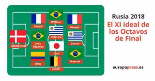Una vez que acabada la primera ronda de cruces del Mundial de Rusia, la correspondiente a los octavos de final, os dejamos el que consideramos en esta sección el mejor once de esta ronda, sin movernos del esquema 3-4-3.