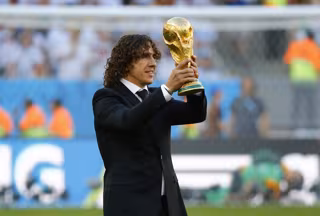 El exjugador español Carles Puyol ha saltado este domingo al Estadio de Maracaná con el trofeo de la Copa del Mundo en sus manos, en los minutos previos al inicio de la final del Mundial de Brasil 2014, simbolizando así el cambio de manos del título que se producirá a la conclusión del choque, tras haberlo logrado España en 2010 en Sudáfrica.