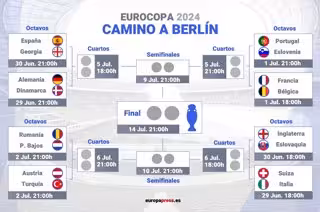 16 selecciones, entre ellas la española, iniciarán este sábado la pelea final por el título de la Eurocopa que se está disputando en Alemania, con la disputa de la fase eliminatoria con la ronda de los octavos de final, comienzo del camino final hacia Berlín el 14 de julio. Repasamos brevemente a todos los octavofinalistas.