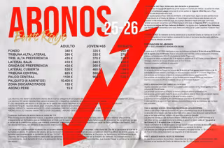 Por su parte, el público joven tiene el mismo precio que los aficionados mayores de 65 años y el valor de los abonos se mueve entre 325 euros en el fondo hasta 550 euros en tribuna central, con los asientos en el palco central valorados en 965 euros. El abono 'peke', para niños nacidos a partir de 2021, incluido, tendrá un coste de 15 euros, y el de la zona de discapacitados, de 125 euros.