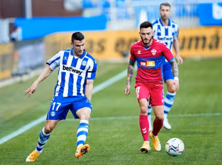 Archivo - Adrian Marin of Deportivo Alaves and Jose Antonio "Josan" Fernandez of Elche during the Spanish league, La Liga Santander, football match played between Deportivo Alaves and Elche CF at Mendizorroza stadium on October 18, 2020 in Vitoria, Spai - Inigo Larreina / AFP7 / Europa Press - Archivo