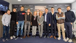 A la presentación de 'Yo soy de aqueellos' asistieron David Aganzo, presidente de AFE, Rodri Hernández, futbolista de la selección española y del Manchester City, Maite Solas, vicepresidenta de FUNDELA, Maribel Matallanas, portavoz de FUNDELA, y Álvaro Benito, exfutbolista y cantante que ha colaborado en este vídeo.