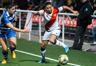 Sheila García intenta marcharse de una rival en el Rayo Vallecano-Deportivo ABANCA de la Primera Ibedrola 2019-2020 - Irina R. H. / AFP7 / Europa Press