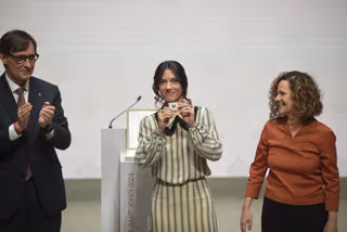 Aitana Bonmatí recibió la Creu de Sant Jordi, creada en 1981 para homenajear a las personas naturales o jurídicas que, por sus méritos, hayan prestado servicios en Cataluña por la defensa de su identidad. Una entrega que tuvo lugar en el Teatro Nacional de Cataluña, y en el que la jugadora del Barça estuvo acompañada por el directivo del FC Barcelona Xavier Puig.