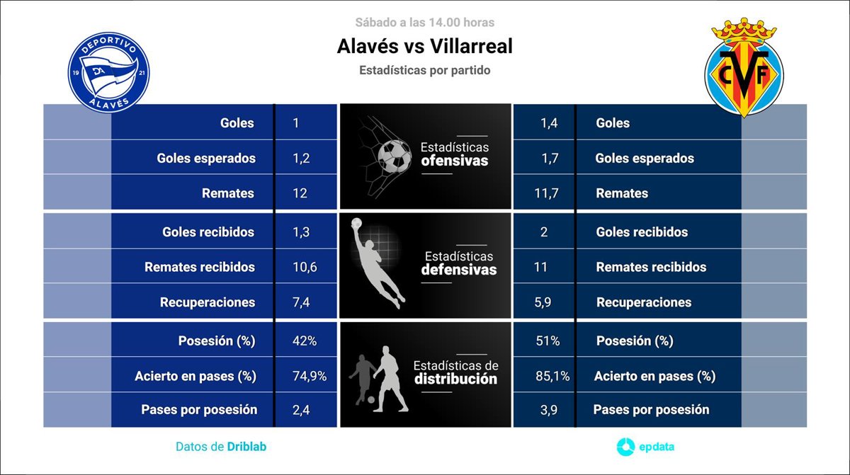 Estadísticas previa Alavés vs Villarreal. - EPDATA