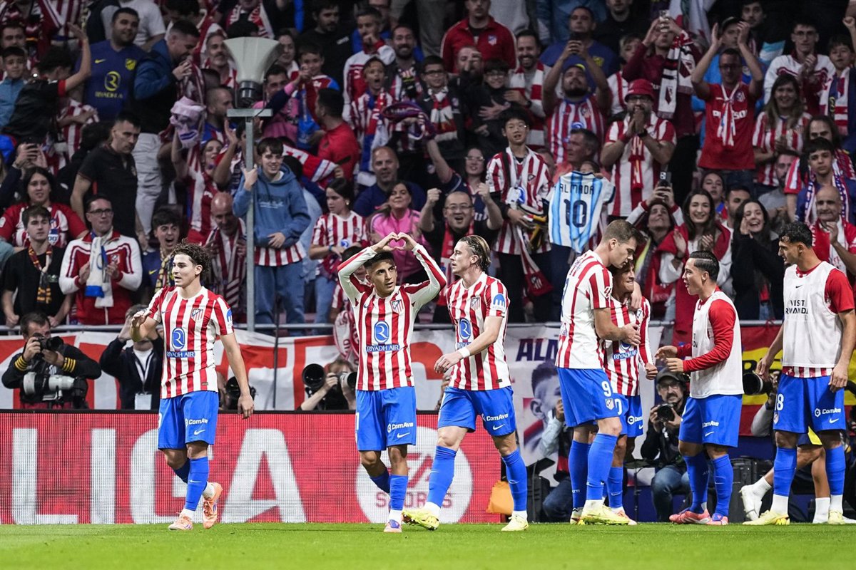 ATLÉTICO DE MADRID: Oblak; Llorente, Le Normand, Giménez, Hancko, Nico (Simeone, min.43); Barrios, Koke (Sorloth, min.54), Baena (Almada, min.63); Julián Álvarez (Raspadori, min.82) y Griezmann (Gallagher, min.55).