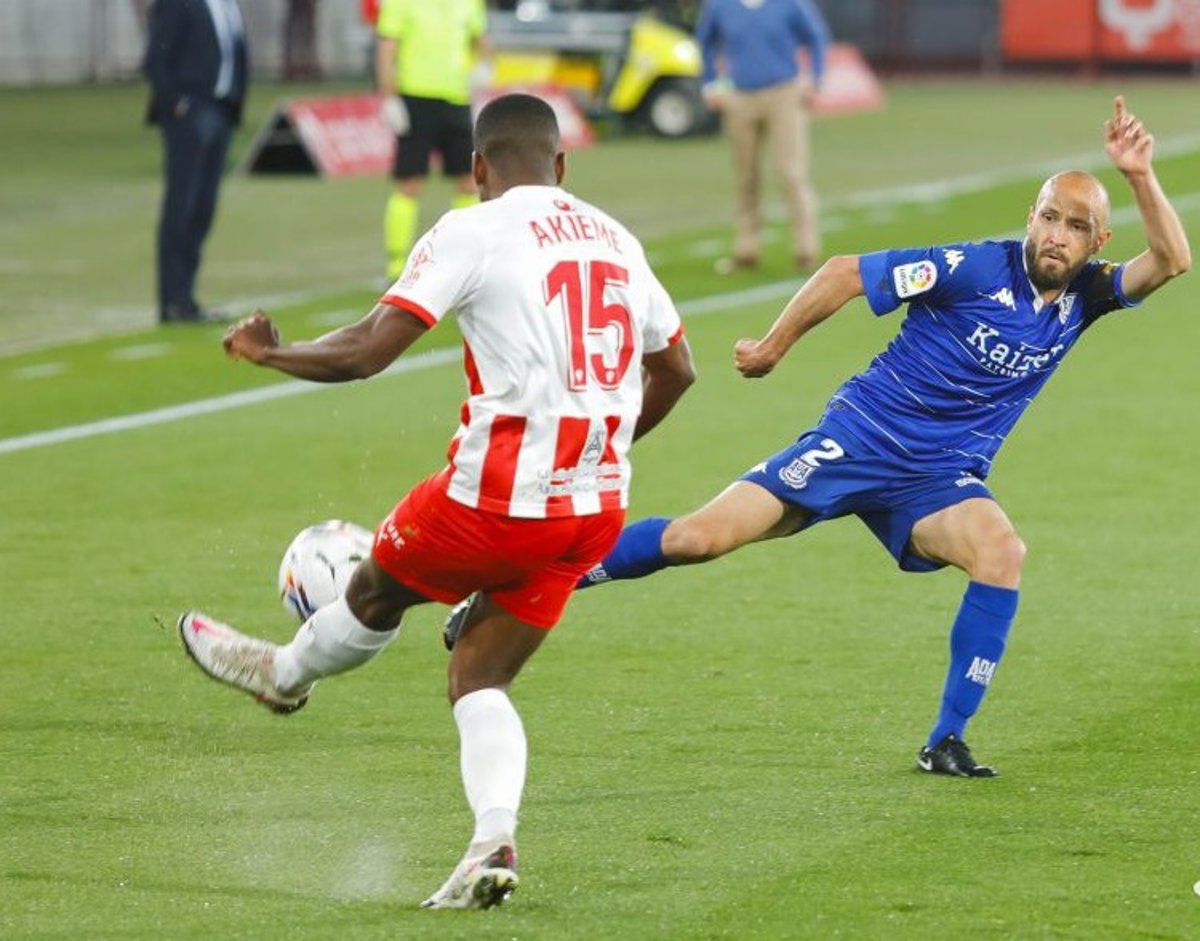 Akieme realiza un despeje en el Almería-Alcorcón de LaLiga SmartBank 2020-2021 - LALIGA