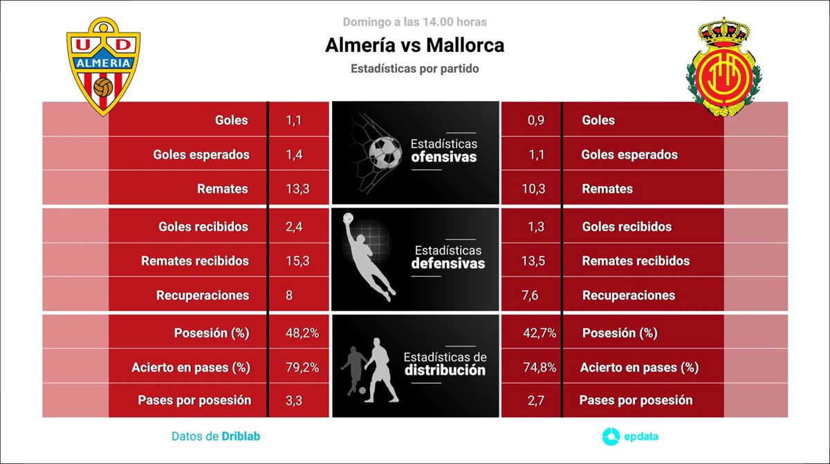 Estadísticas previa Almería vs Mallorca. - EPDATA