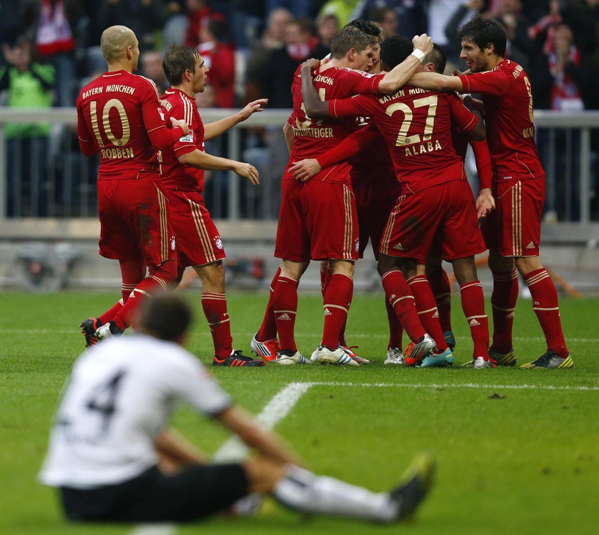 Con Javi Martínez de titular, pronto se adelantaría el conjunto bávaro en el marcador gracias al primer gol de Mandzukic, titular por delante de Mario Gómez, después de un fallo garrafal del portero Wolfgang Hesl tras el remate del delantero croata.