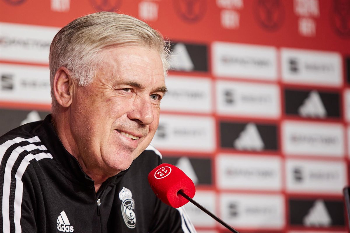 Carlo Ancelotti, head coach of Real Madrid, attends his press conference before the spanish cup, Copa del Rey, football match between Real Madrid and CA Osasuna at La Cartuja Stadium on May 5, 2023 in Sevilla, Spain. - Joaquin Corchero / Afp7 / Europa Press