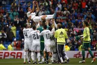 Pero al final, el veterano jugador pudo también saborear su último partido en el Santiago Bernabéu con victoria. Tras el pitido final y el final del sufrimiento, la afición se consagró al lateral, manteado por todos sus compañeros en el centro del campo.