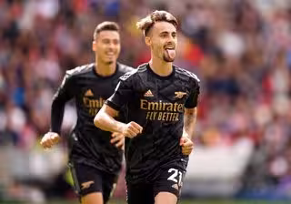 El jugador del Arsenal Fabio Vieira celebra su gol ane el Brentford en la temporada 2022-2023. - John Walton/PA Wire/dpa