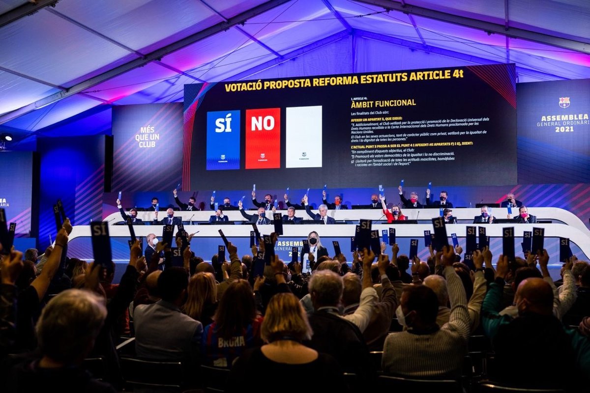 La Asamblea de Socios Compromisarios del FC Barcelona ha aprobado todos los cambios en los Estatutos del club propuestos por la Junta Directiva, como ampliar el máximo número de directivo o suspender temporalmente el autocontrol económico para evitar pérdidas, a excepción de un único cambio rechazado, por dos votos, como es la relación entre club y sus peñas.