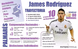 Desde su gran papel en el Mundial de Brasil con la selección colombiana, James Rodríguez ha estado en el punto de mira de Florentino Pérez, quien ha conseguido, una vez más, fichar otra estrella para el vestuario del Real Madrid. Procedente del AS Mónaco francés, jugará las próximas seis temporadas en las filas del conjunto madridista.
