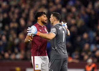 Archivo - 04 January 2023, United Kingdom, Birmingham: Aston Villa's Tyrone Mings and goalkeeper Emiliano Martinez before the English Premier League soccer match between Aston Villa and Wolverhampton Wanderers at Ashton Gate. Photo: Tim Goode/PA Wire/dpa - Tim Goode/PA Wire/dpa - Archivo