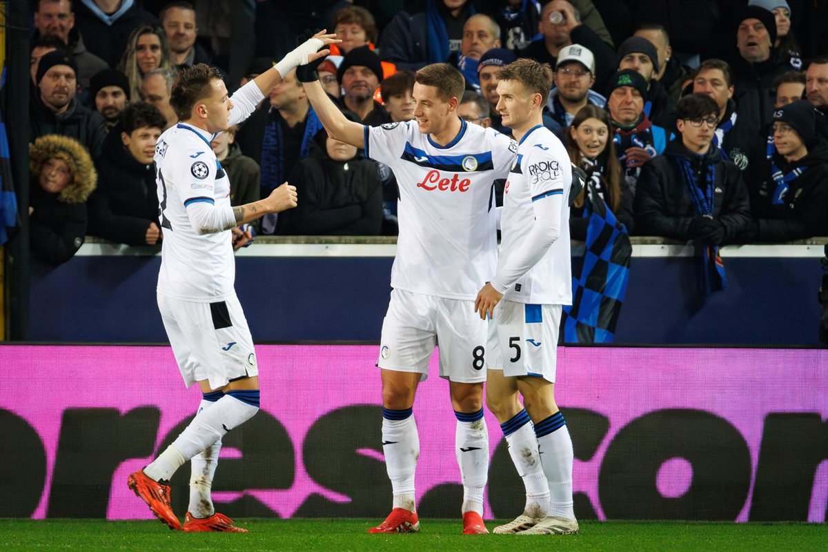 Los jugadores del Atalanta celebran su gol ante el Brujas en la ida del 'playoff' de la Champions 24-25 - Kurt Desplenter/Belga/dpa