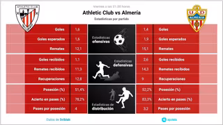 Estadísticas previa Athletic Club vs Almería. - EPDATA