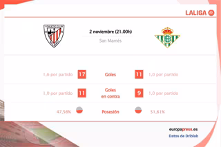Estadísticas previa Athletic Club vs Real Betis. - EPDATA