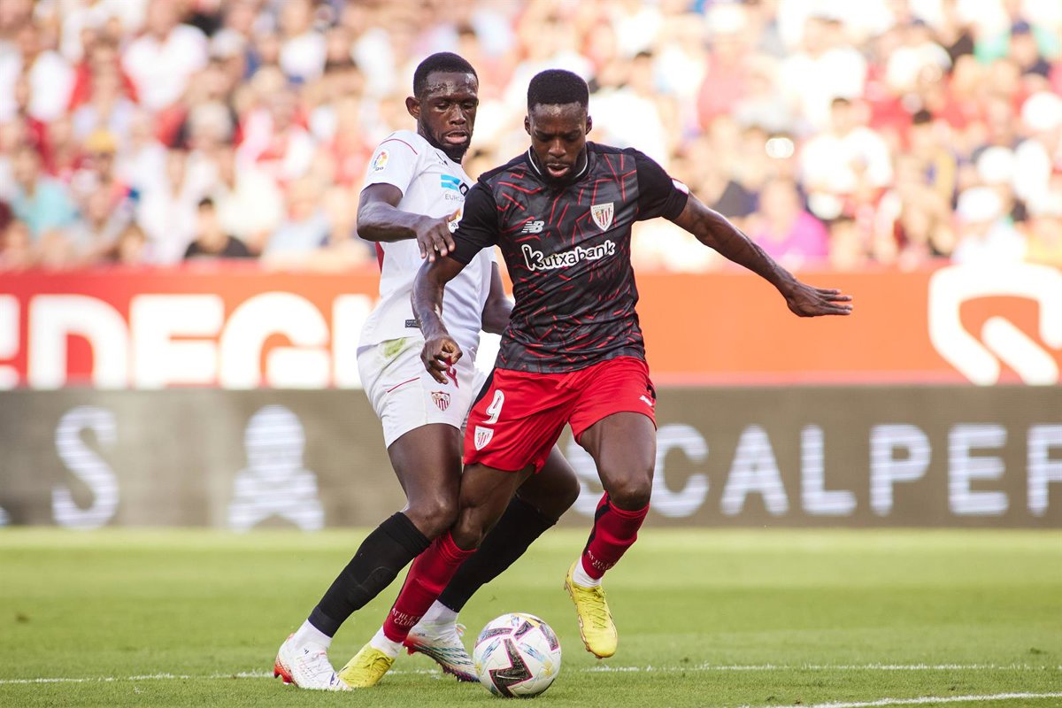 El central del Sevilla Tanguy Nianzou y el delantero del Athletic Club Iñaki Williams luchan por un balón durante el Sevilla - Athletic - Joaquin Corchero / AFP7 / Europa Press