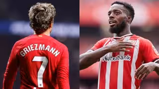 Los jugadores Antoine Griezmann (Atlético de Madrid) e Iñaki Williams (Athletic Club). - EUROPA PRESS
