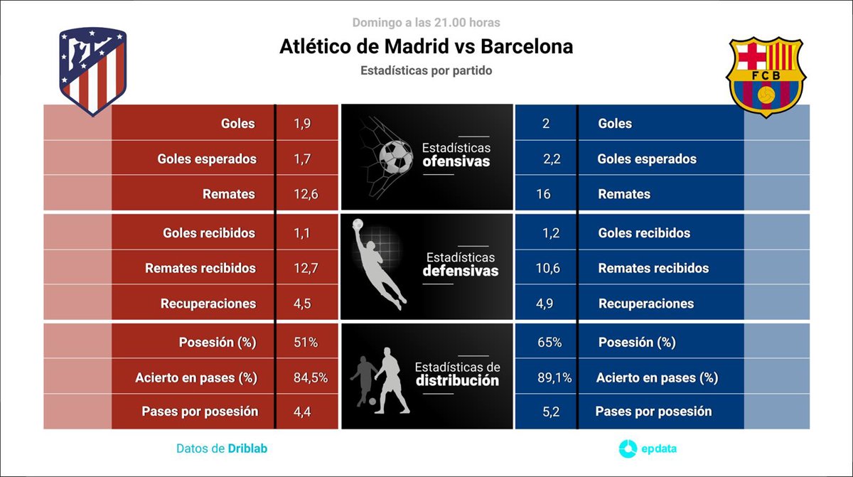Estadísticas previa Atlético de Madrid vs Barcelona. - EPDATA
