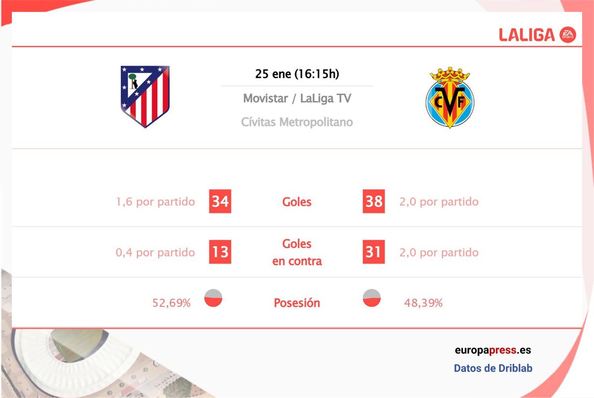 Estadísticas previa Atlético de Madrid vs Villarreal. - EPDATA