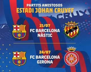 Los de Ronald Koeman iniciarán la preparación para la nueva temporada con dos amistosos en el Estadi Johan Cruyff, al igual que la pretemporada pasada, y contra los mismos rivales que entonces; Nstic y Girona, que se ha quedado a las puertas del ascenso a LaLiga Santander.