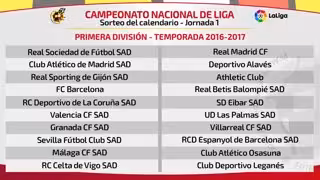 El conjunto azulgrana comenzará la defensa de su título liguero en el Camp Nou ante el equipo verdiblanco, mientras que el madridista lo hará visitando a la Real Sociedad en Anoeta, y el rojiblanco en el Vicente Calderón ante el recién ascendido Deportivo Alavés. La primera jornada liguera está programada para el fin de semana del 20-21 de agosto.