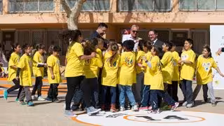 Con la asistencia de los niños de la escuela, que inauguraron la pista de minifútbol, la pista de atletismo y una zona multideportiva, Cruyff se dio un auténtico baño de masas, aclamado por los niños y por transeúntes que se acercaron a la valla del recinto escolar a grito de 'Johan, Johan'. No tan aclamado fue Bartomeu por la gente, aunque sí se ganó el cariño de los niños.