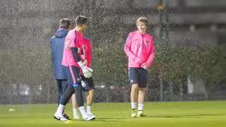 En la Ciutat Esportiva Joan Gamper, y bajo una intensa lluvia, el equipo blaugrana siguió preparando el partido de vuelta de los dieciseisavos de final de Copa de este martes en el Camp Nou --22.00 horas--, donde se prevé que Luis Enrique haga varias rotaciones después de la clara victoria de la ida.