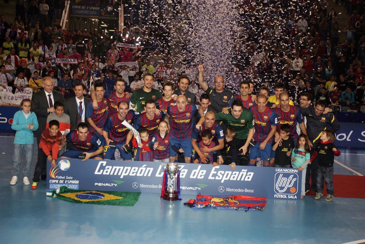 El FC Barcelona Alusport se ha impuesto al Lobelle Santiago (5-3) en la final de la Copa de España 2012 disputada en el Palacio de Deportes de La Rioja este domingo, en una final memorable que tuvo a Sergio Lozano como protagonista al marcar dos goles en la prórroga, y permite sumar al equipo catalán su segundo título copero consecutivo tras el logrado en Segovia el año anterior.