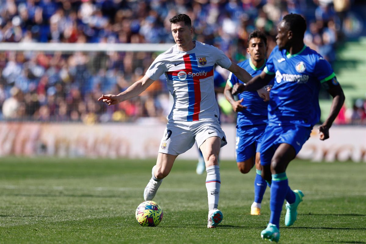 Archivo - Robert Lewandowski of FC Barcelona in action during the spanish league, La Liga Santander, football match played between Getafe CF and FC Barcelona at Coliseum Alfonso Perez stadium on April 16, 2023, in Madrid, Spain. - Oscar J. Barroso / Afp7 / Europa Press - Archivo