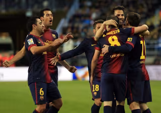 El FC Barcelona ha sumado una nueva victoria (1-3) este domingo en su visita a La Rosaleda correspondiente a la decimonovena jornada de la Liga BBVA, de la mano del cuatro veces ganador del Balón de Oro, Leo Messi, con lo que los de Tito Vilanova, presente en el banquillo culé, despiden una histórica primera vuelta --55 de 57 puntos posible-- con un triunfo de mérito ante el Málaga que le separa del Atlético en 11 puntos y del Real Madrid, en 18.