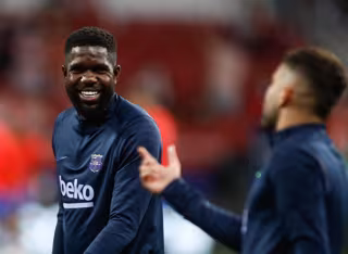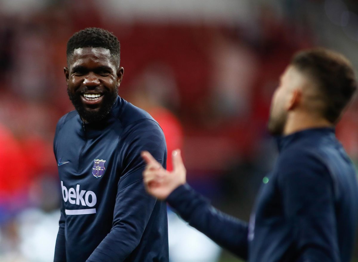 Archivo - Samuel Umtiti, en un calentamiento con el Bara. - Oscar J. Barroso / AFP7 / Europa Press - Archivo