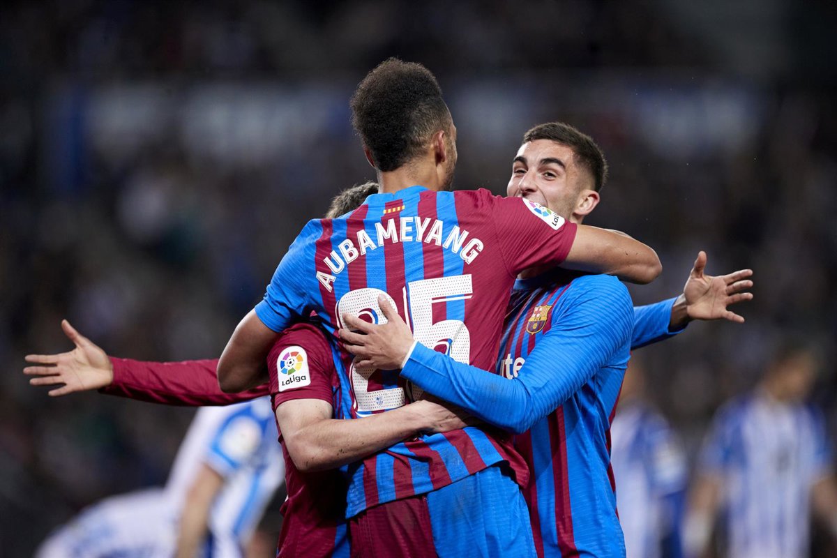 La Real no estuvo lúcida en el primer tiempo, maniatada por una línea de hasta seis atrás de los catalanes, para salir en velocidad con Ferran, Gavi y Aubameyang. Entre los tres, tras un balón al palo de Dembélé, llegó el tanto del gabonés. Isak perdonó las locales, pero el equipo vasco no se acercó con peligro a la meta rival.