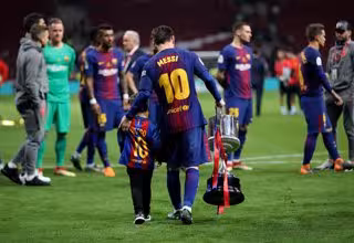 En su fondo, la afición festejó con el equipo el primer título de la temporada, con la liga en el bolsillo y a solo una victoria, para cerrar con un doblete que cure el batacazo de Champions. Piqué, Messi e Iniesta fueron los más aclamados, en un río de familia y futbolistas difícil custodiar para un centenar de agentes de seguridad.