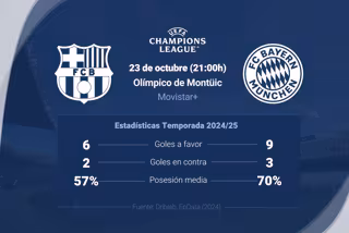 El duelo entre FC Barcelona y Bayern Múnich de la tercera jornada de la Fase Liga de la Liga de Campeones tendrá lugar este miércoles a partir de las 21.00 horas, y se podrá ver en España a través de Movistar+ y Movistar Liga de Campeones 2.
