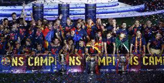 El FC Barcelona se dio un baño de masas este domingo por las calles de la Ciudad Condal para terminar en un Camp Nou abarrotado la fiesta por la consecución del triplte --Liga, Copa y 'Champions'-- esta temporada, un final de celebración en el que pudieron agradecer a su afición todo el apoyo y, alguno como Gerard Piqué, acordarse del eterno rival.