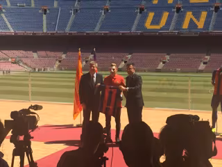 "Lucas, gracias por venir al Camp Nou. Estamos muy orgullosos y muy contentos de presentarle. Tenemos muchas ganas y nos ha encantado que haya aceptado este reto de venir", aseguró el presidente del Barcelona en el feudo blaugrana.