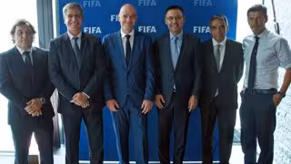 Bartomeu, acompañado del vicepresidente deportivo, Jordi Mestre, el director de deportes profesionales, Albert Soler, y el director de fútbol del club, Raúl Sanllehí, mantuvo este jueves un encuentro institucional con el presidente Gianni Infantino en la sede de la FIFA.