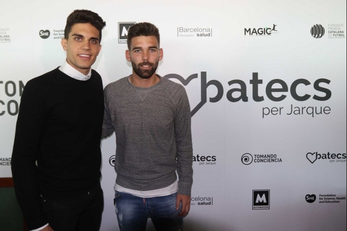 Los jugadores del FC Barcelona y del RCD Espanyol Marc Bartra y Víctor Álvarez han apadrinado este jueves en la capital catalana el proyecto 'Batecs per Jarque' ('Latidos por Jarque'), iniciativa con la que pretenden evitar ataques al corazón en la práctica del fútbol mediante la instalación de desfibriladores en los campos, y donde el central blaugrana ha asegurado, a nivel personal, que su situación en el equipo "seguro que mejora".