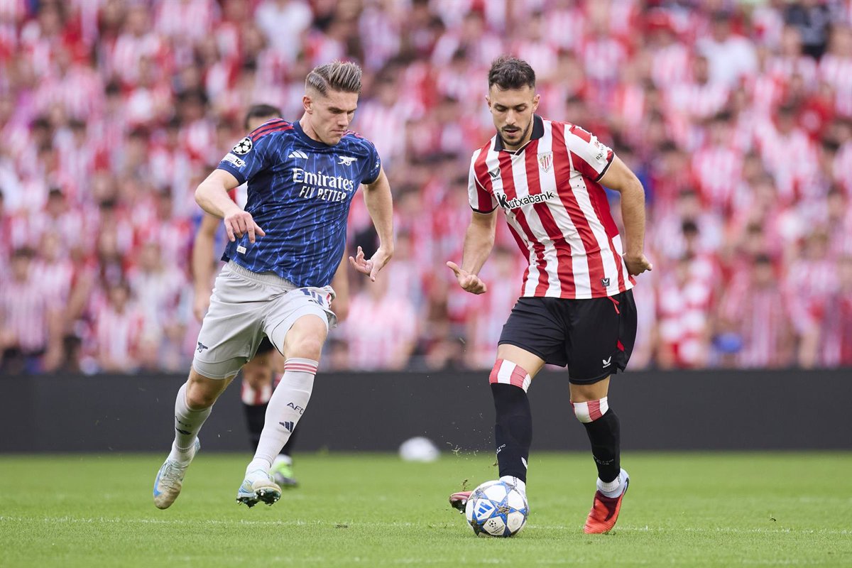 El jugador del Athletic Club Aitor Paredes durante el partido de Champions League ante el Arsenal. - Ricardo Larreina / AFP7 / Europa Press