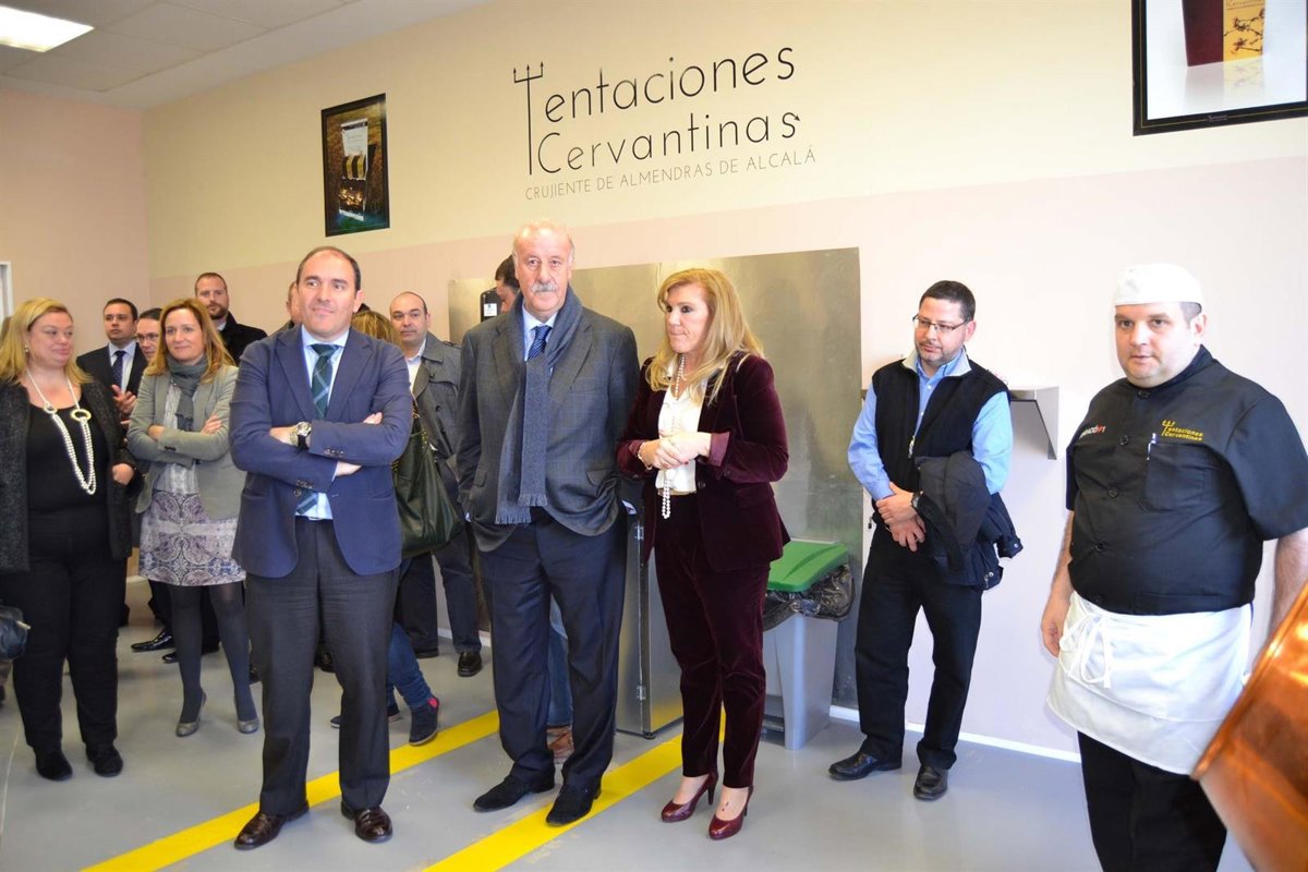 El seleccionador nacional de fútbol, Vicente del Bosque, y el alcalde de Alcalá de Henares, Javier Bello, han apadrinado la presentación de un producto basado en las tradicionales almendras garrapiñadas de la localidad complutense, denominadas 'Tentaciones Cervantinas', elaborado y comercializado por el Centro Especial de Empleo de Alcalá, donde trabajan 60 personas con discapacidad.