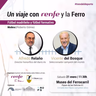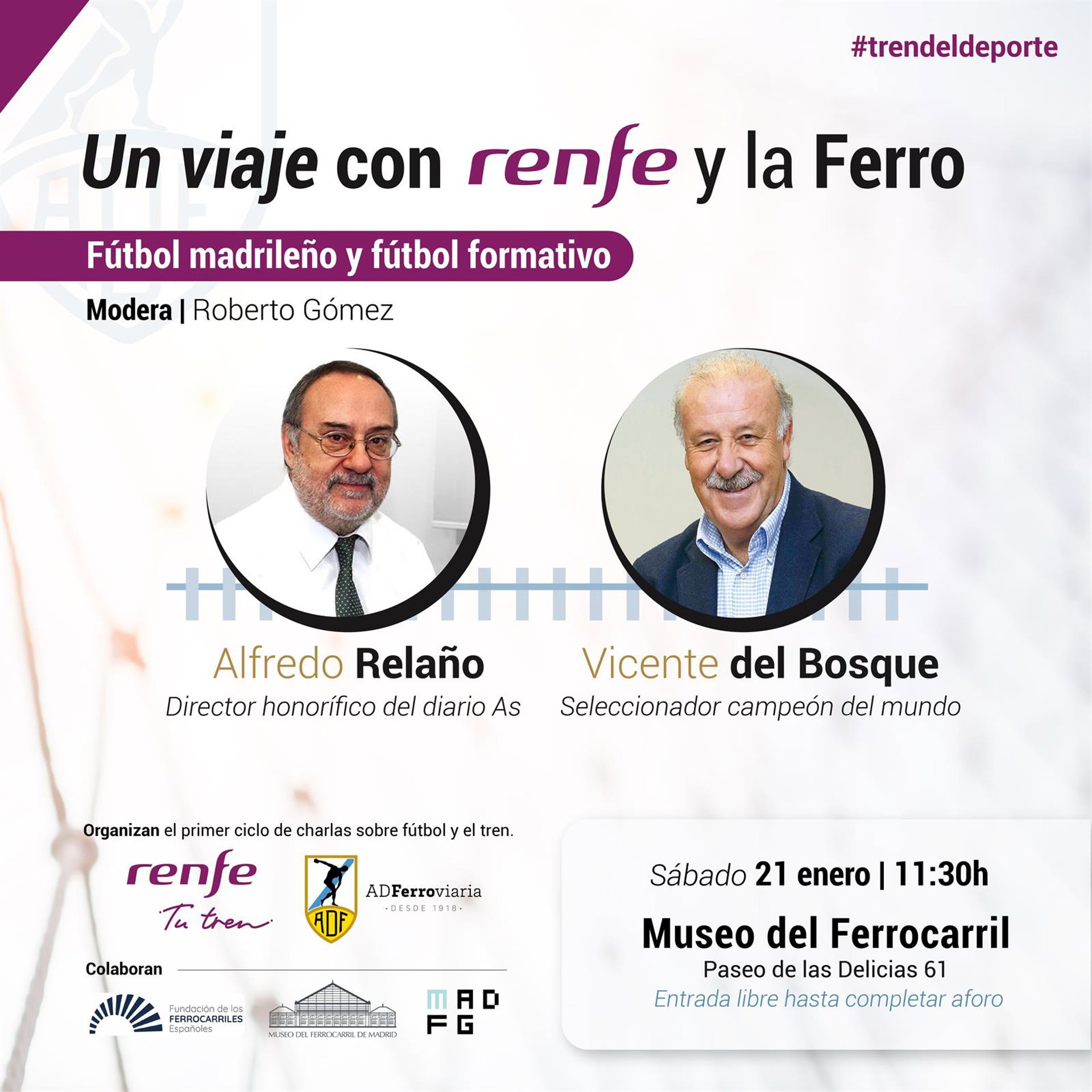 Organizado por Renfe y la Agrupación Deportiva Ferroviaria y la Fundación de los Ferrocarriles Españoles, y con el Museo del Ferrocarril y MAD Football Group como colaboradores, Vicente del Bosque, campeón del mundo en 2010 y de Europa en 2012 como seleccionador español, y Alfredo Relaño harán un recorrido por la historia del fútbol madrileño y las categorías formativas.