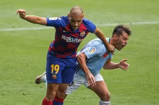 Martin Braithwaite of FC Barcelona and Kevin Vazquez of Celta de Vigo fight for the ball during the spanish league, La Liga, football match played between Celta de Vigo and FC Barcelona at Balaidos Abanca Stadium - Irina R. H. / AFP7 / Europa Press - Archivo