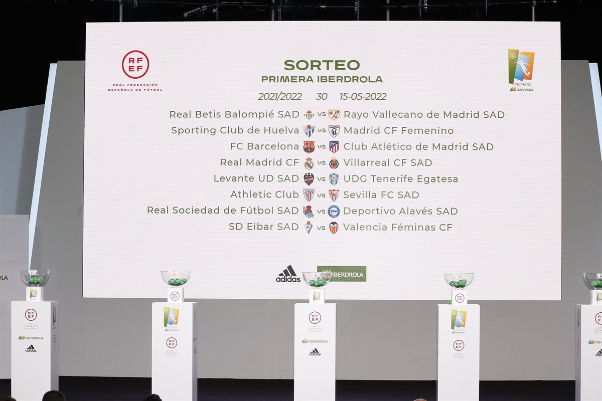 El FC Barcelona, vigente campeón, se enfrentará contra el Tenerife Egatesa y habrá derbi Atlético de Madrid-Rayo Vallecano en la primera jornada de la temporada 2021-22 de la Primera Iberdrola, la máxima categoría del fútbol femenino español, que se disputará el 5 de septiembre, según el sorteo celebrado este jueves por la RFEF.