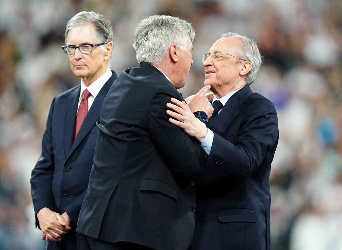 Archivo - Carlo Ancelotti saluda a Florentino Pérez tras la conquista de la Liga de Campeones de 2022 - Adam Davy/PA Wire/dpa - Archivo