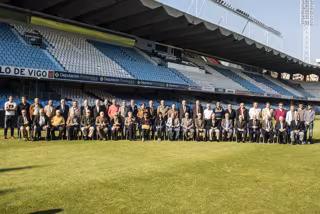 Tras el acto, al que asistieron los integrantes del consejo de administración del Celta, los capitanes y el cuerpo técnico del primer equipo y del filial, realizaron la tradicional foto sobre el césped de Balaídos.