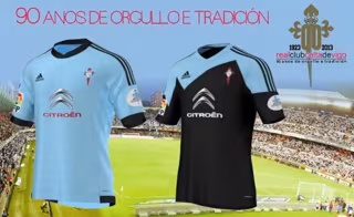 La primera equipación plantea un diseño sencillo y elegante, combinando el clásico azul celeste representativo del club con detalles en negro en los ribetes de cuello y mangas. El escudo de la camiseta será bordado e incluirá una serie de novedades como el nuevo diseño en de logotipo del patrocinador principal (Citroën) y el logotipo del 90 aniversario del club ubicado en la manga izquierda.