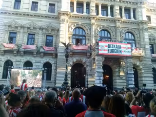 Tras los discursos, las jugadoras al salido al balcón del Palacio foral donde han sido vitoreadas por los aficionados, entre gritos de "Athletic" y "Campeonas".